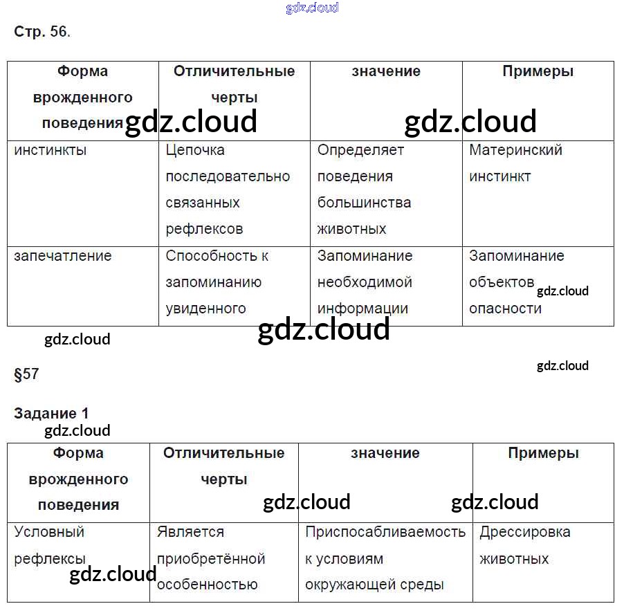 Ответ на задание 56 Рабочая тетрадь Биология за 8 (восьмой) класс Маш, Драгомилов Алгоритм успеха 2019 Часть 1, 2