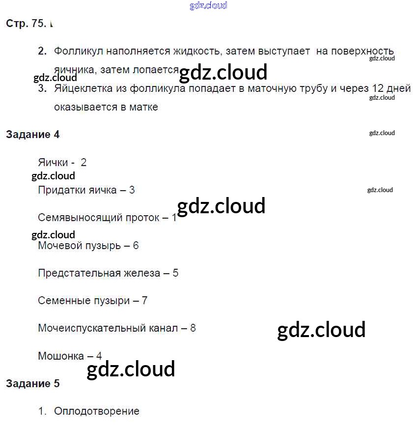 Ответ на задание 75 Рабочая тетрадь Биология за 8 (восьмой) класс Маш, Драгомилов Алгоритм успеха 2019 Часть 1, 2
