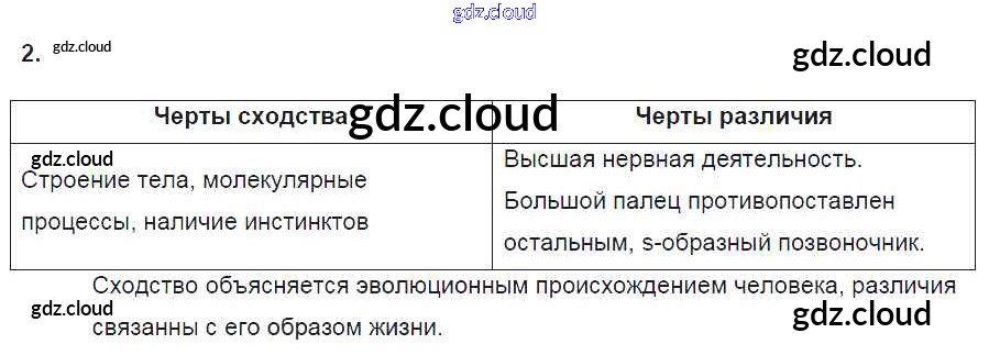 Ответы к §2. Биологическая природа человека по Биологии 8 класс Рабочая тетрадь Пасечник Линия жизни Просвещение