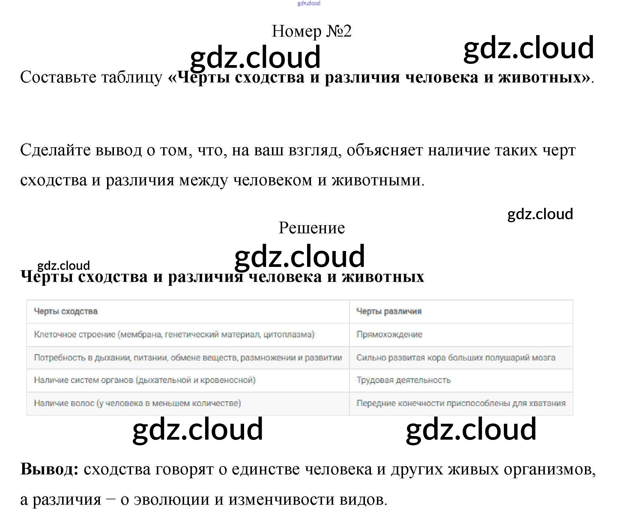 Ответ на задание 2 Рабочая тетрадь Биология за 8 (восьмой) класс Пасечник, Швецов Линия жизни 2019