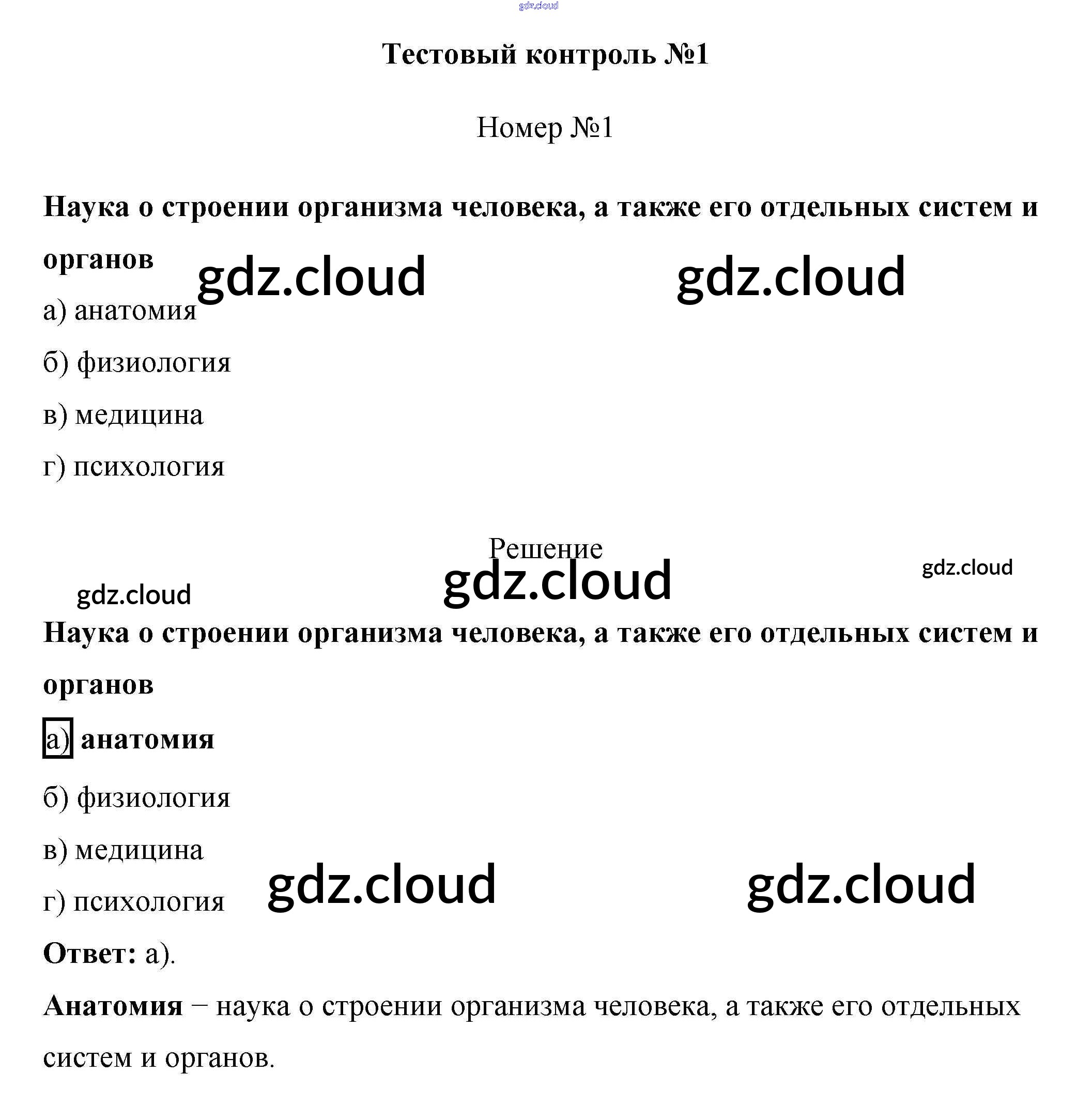 Ответы к тестовому контролю 1 по Биологии 8 класс Рабочая тетрадь Пасечник Линия жизни Просвещение