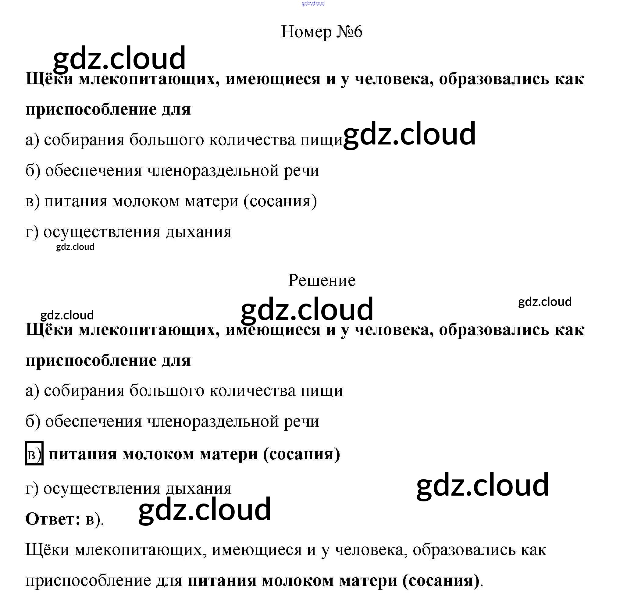 Ответ на задание 6 Рабочая тетрадь Биология за 8 (восьмой) класс Пасечник, Швецов Линия жизни 2019