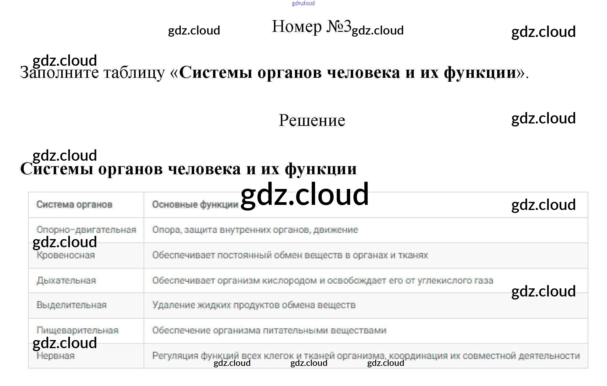 Ответ на задание 3 Рабочая тетрадь Биология за 8 (восьмой) класс Пасечник, Швецов Линия жизни 2019