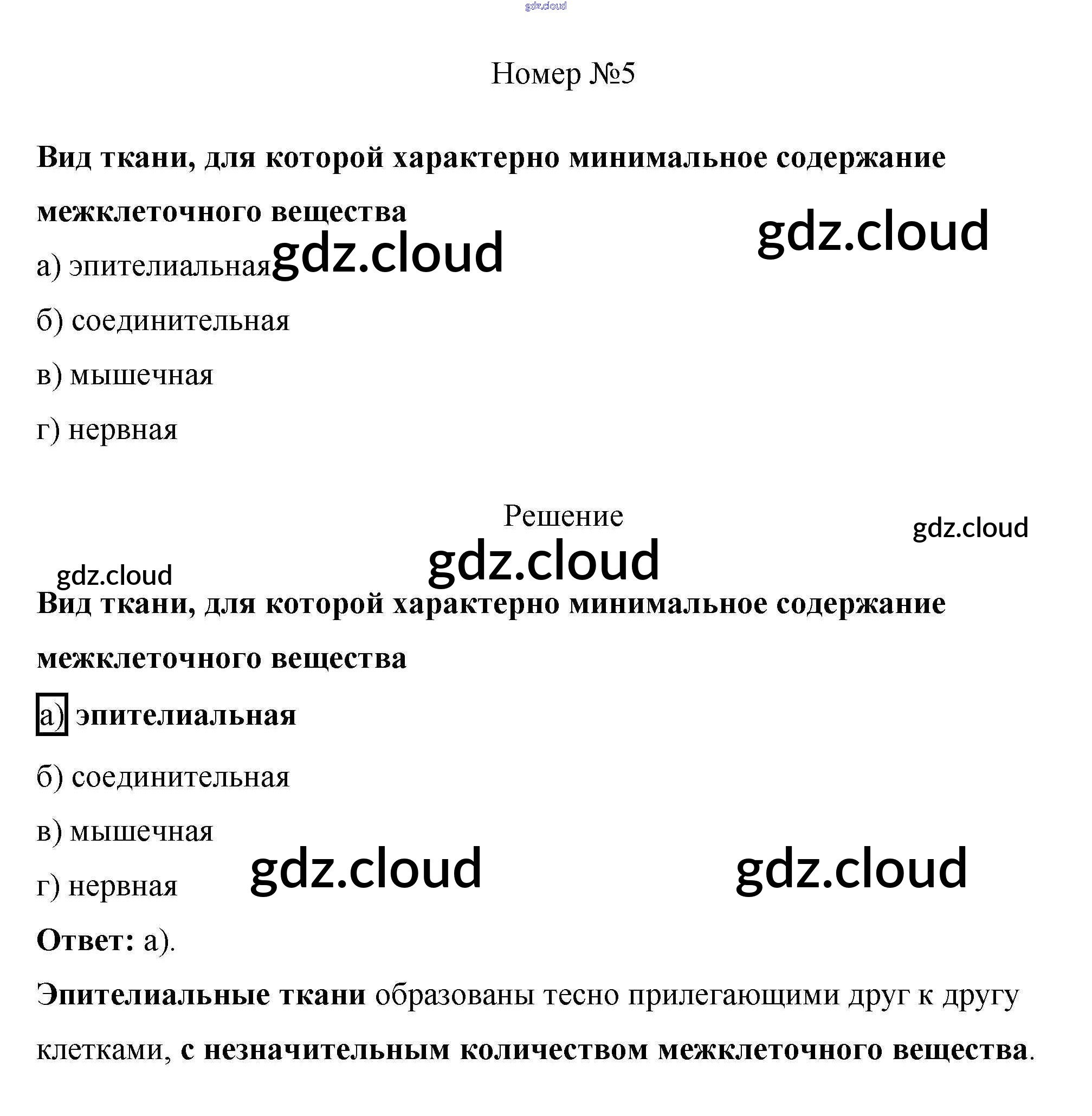 Ответ на задание 5 Рабочая тетрадь Биология за 8 (восьмой) класс Пасечник, Швецов Линия жизни 2019