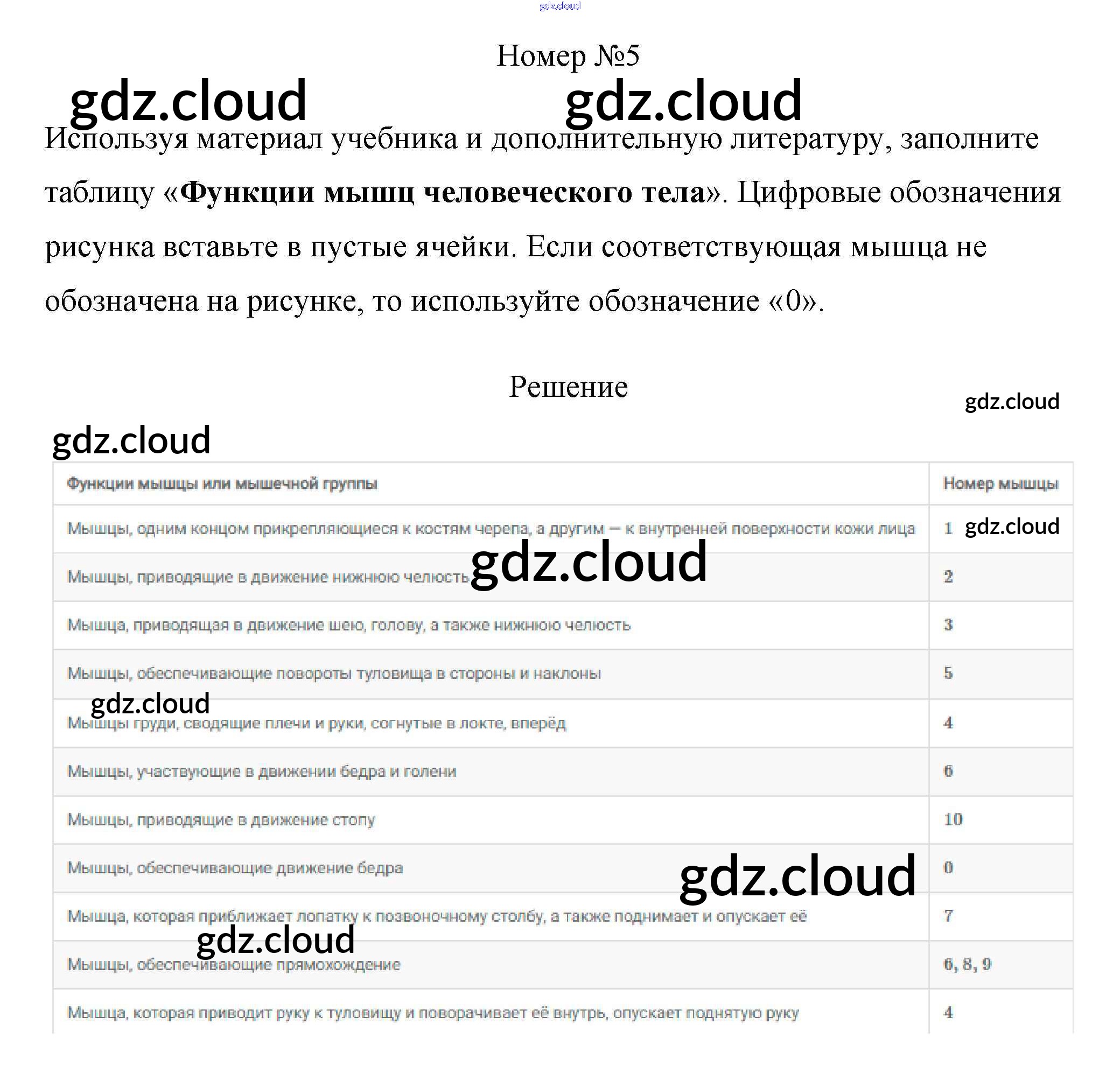 Ответ на задание 5 Рабочая тетрадь Биология за 8 (восьмой) класс Пасечник, Швецов Линия жизни 2019