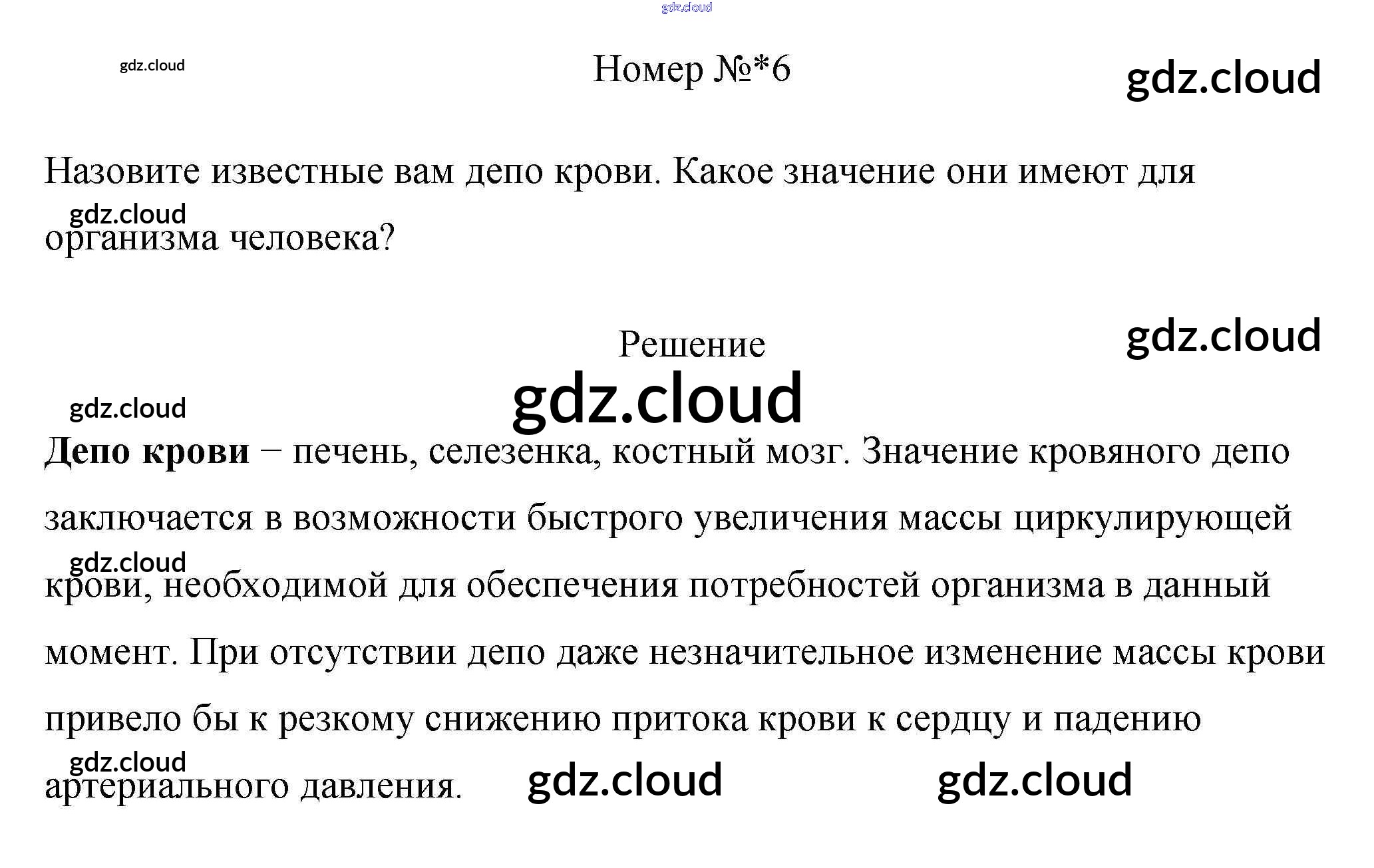 Ответ на задание 6 Рабочая тетрадь Биология за 8 (восьмой) класс Пасечник, Швецов Линия жизни 2019