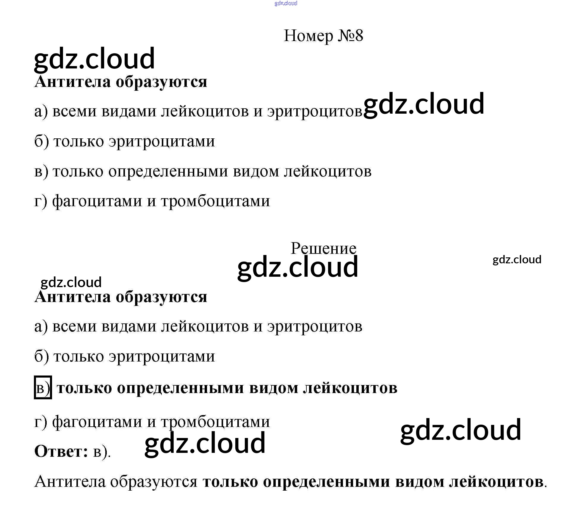 Ответы к тестовому контролю 4 по Биологии 8 класс Рабочая тетрадь Пасечник Линия жизни Просвещение