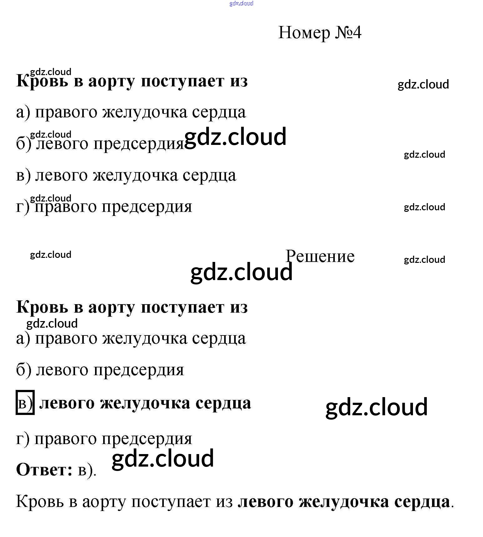 Ответ на задание 4 Рабочая тетрадь Биология за 8 (восьмой) класс Пасечник, Швецов Линия жизни 2019