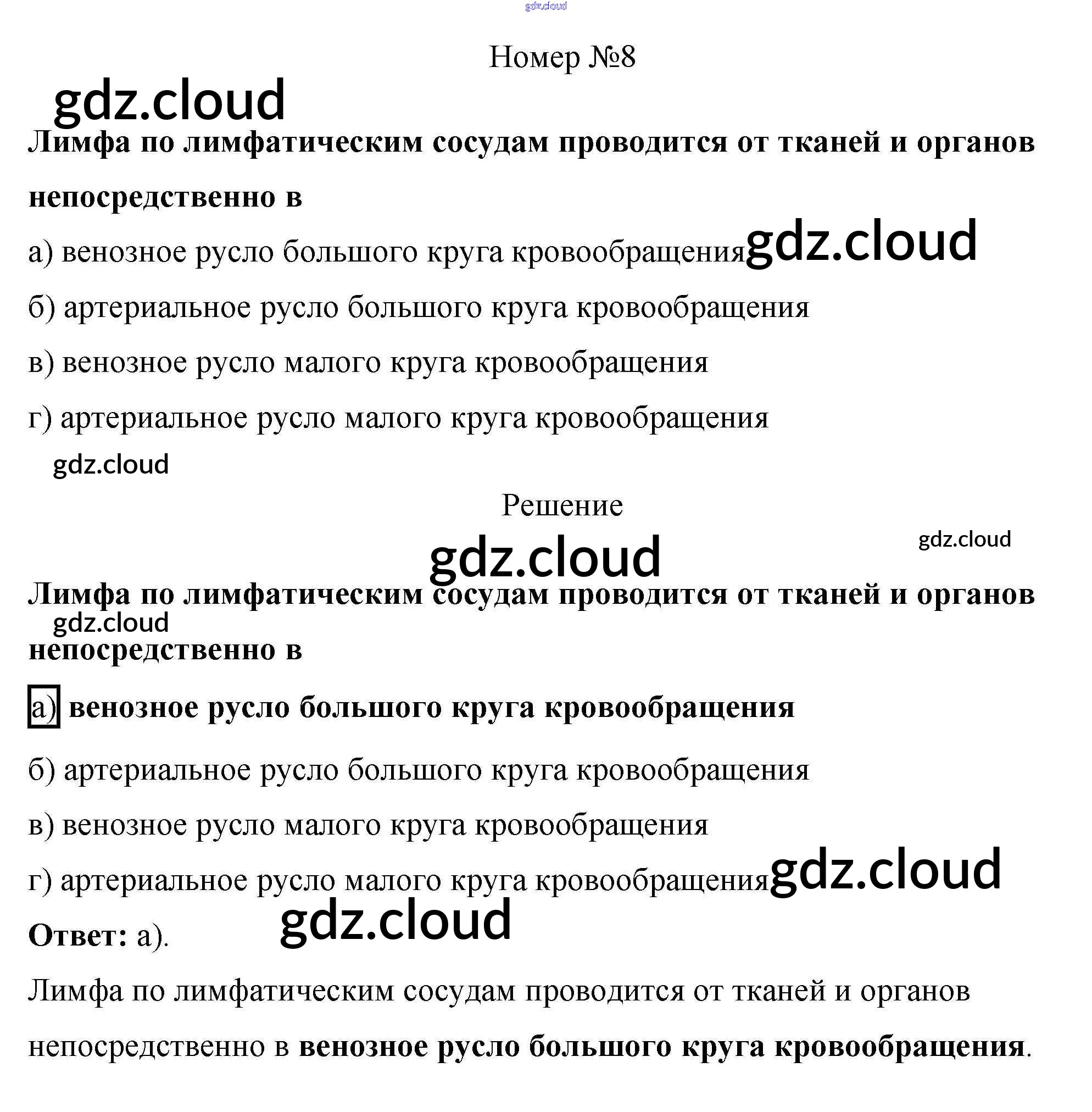 Ответы к тестовому контролю 5 по Биологии 8 класс Рабочая тетрадь Пасечник Линия жизни Просвещение