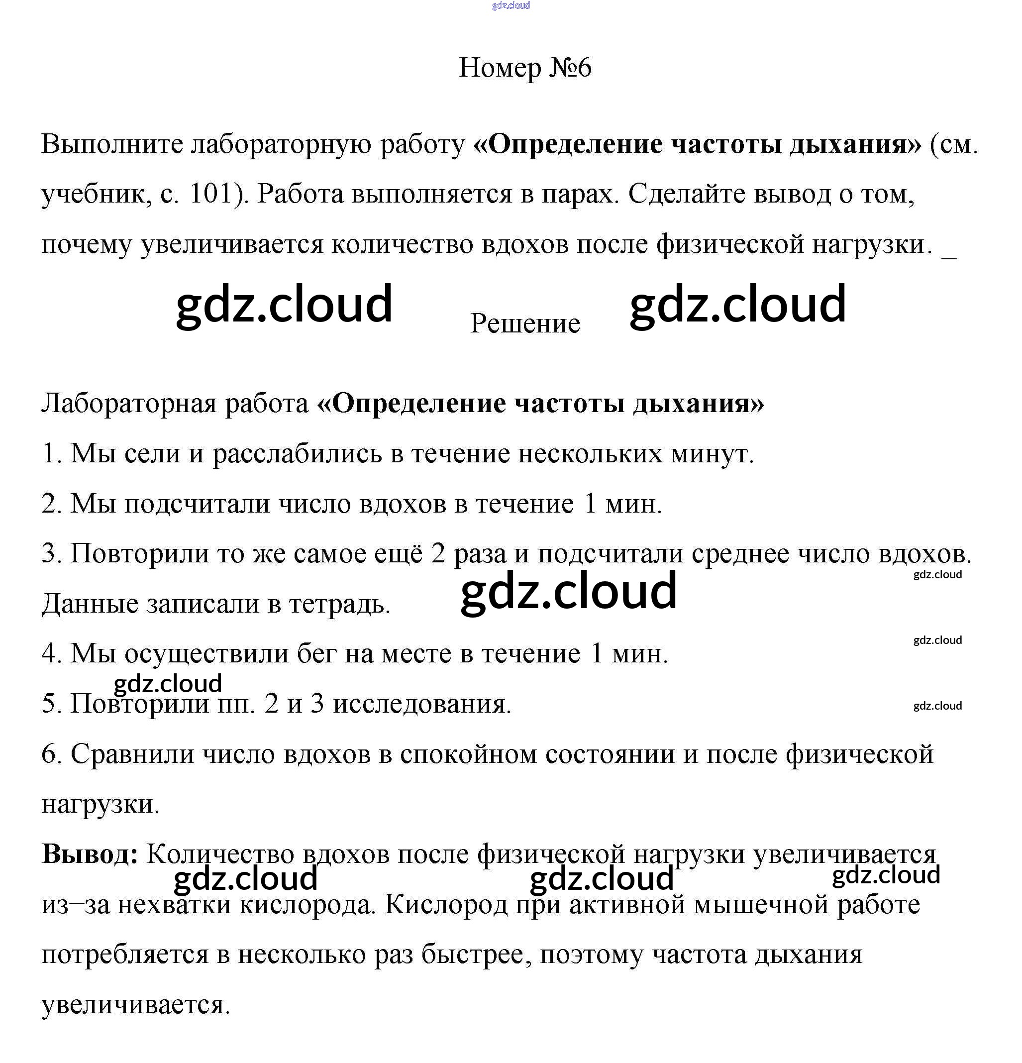 Ответ на задание 6 Рабочая тетрадь Биология за 8 (восьмой) класс Пасечник, Швецов Линия жизни 2019