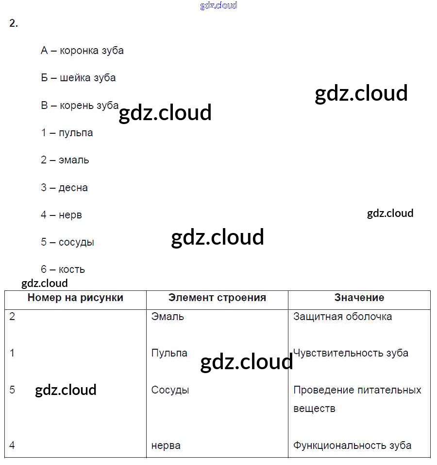 Ответ на задание 2 Рабочая тетрадь Биология за 8 (восьмой) класс Пасечник, Швецов Линия жизни 2019