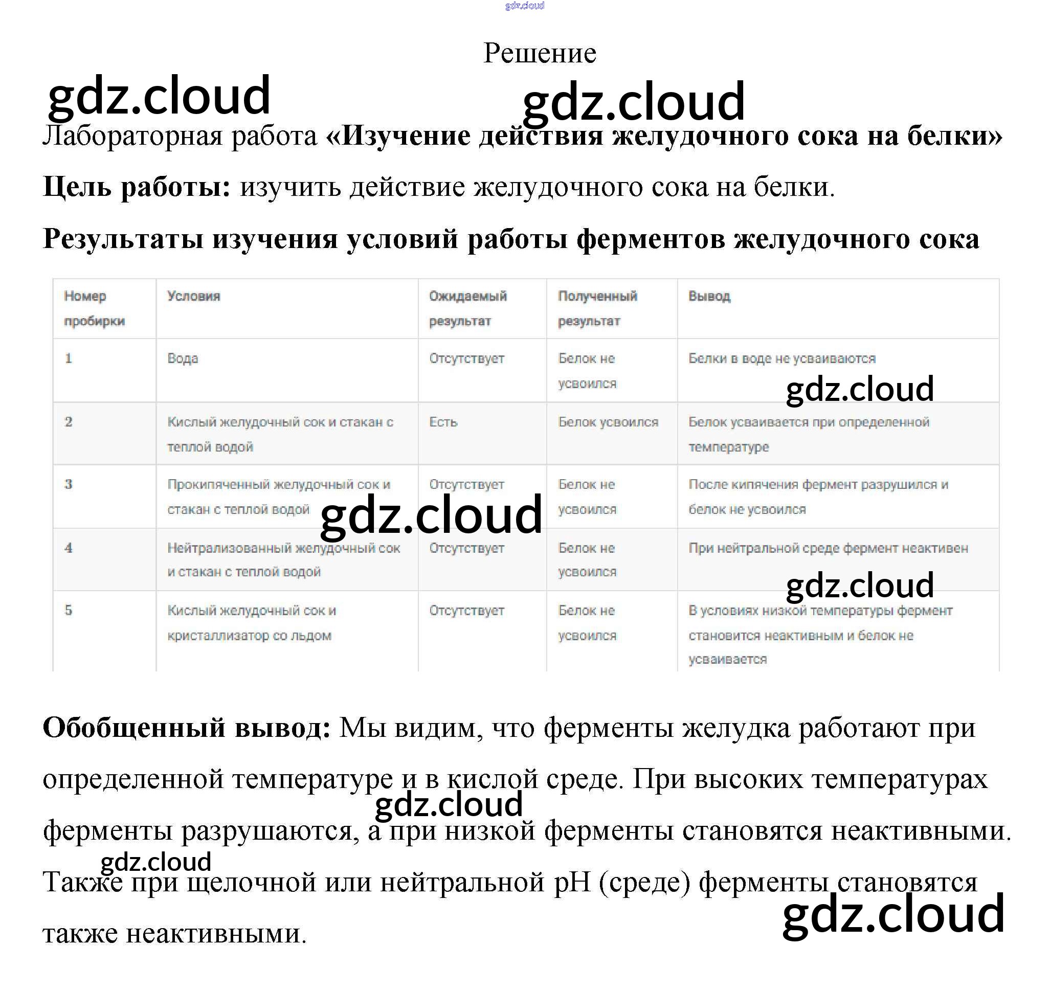 Ответы к §26. Пищеварение в желудке и кишечнике по Биологии 8 класс Рабочая тетрадь Пасечник Линия жизни Просвещение