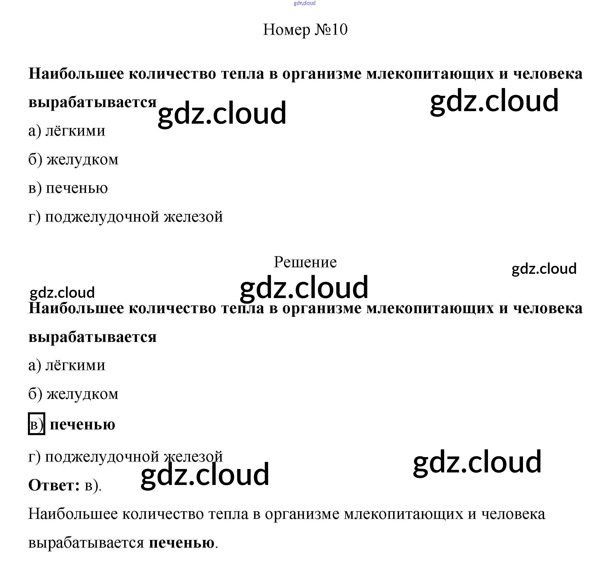 Ответ на задание 10 Рабочая тетрадь Биология за 8 (восьмой) класс Пасечник, Швецов Линия жизни 2019