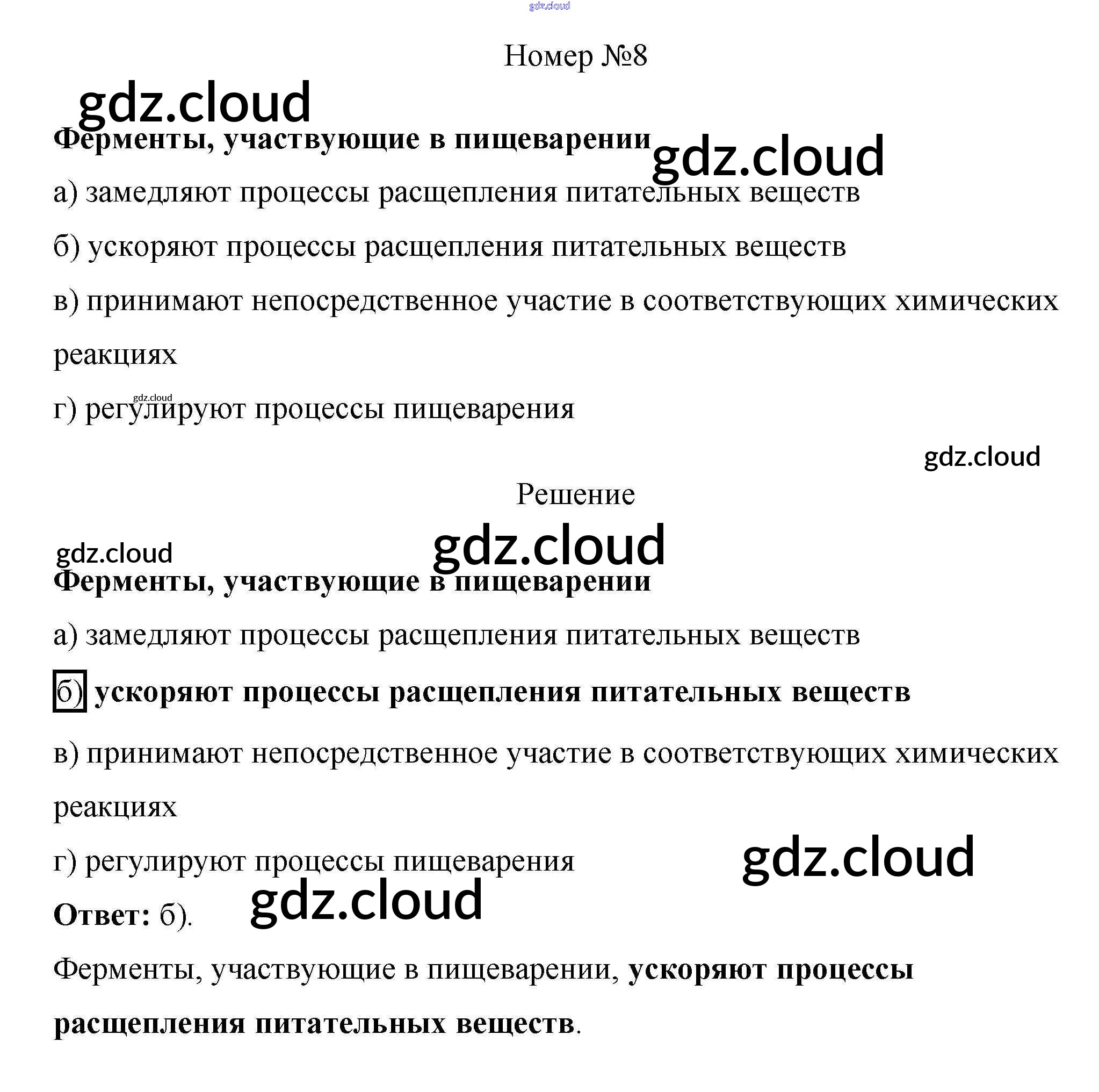 Ответы к тестовому контролю 8 по Биологии 8 класс Рабочая тетрадь Пасечник Линия жизни Просвещение