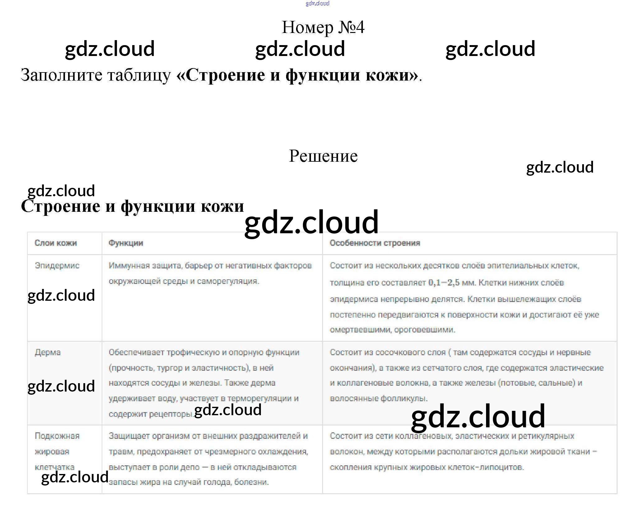 Ответ на задание 4 Рабочая тетрадь Биология за 8 (восьмой) класс Пасечник, Швецов Линия жизни 2019