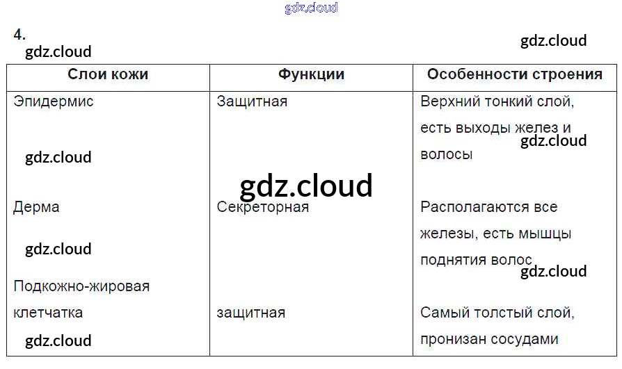 Ответы к §35. Наружные покровы тела по Биологии 8 класс Рабочая тетрадь Пасечник Линия жизни Просвещение