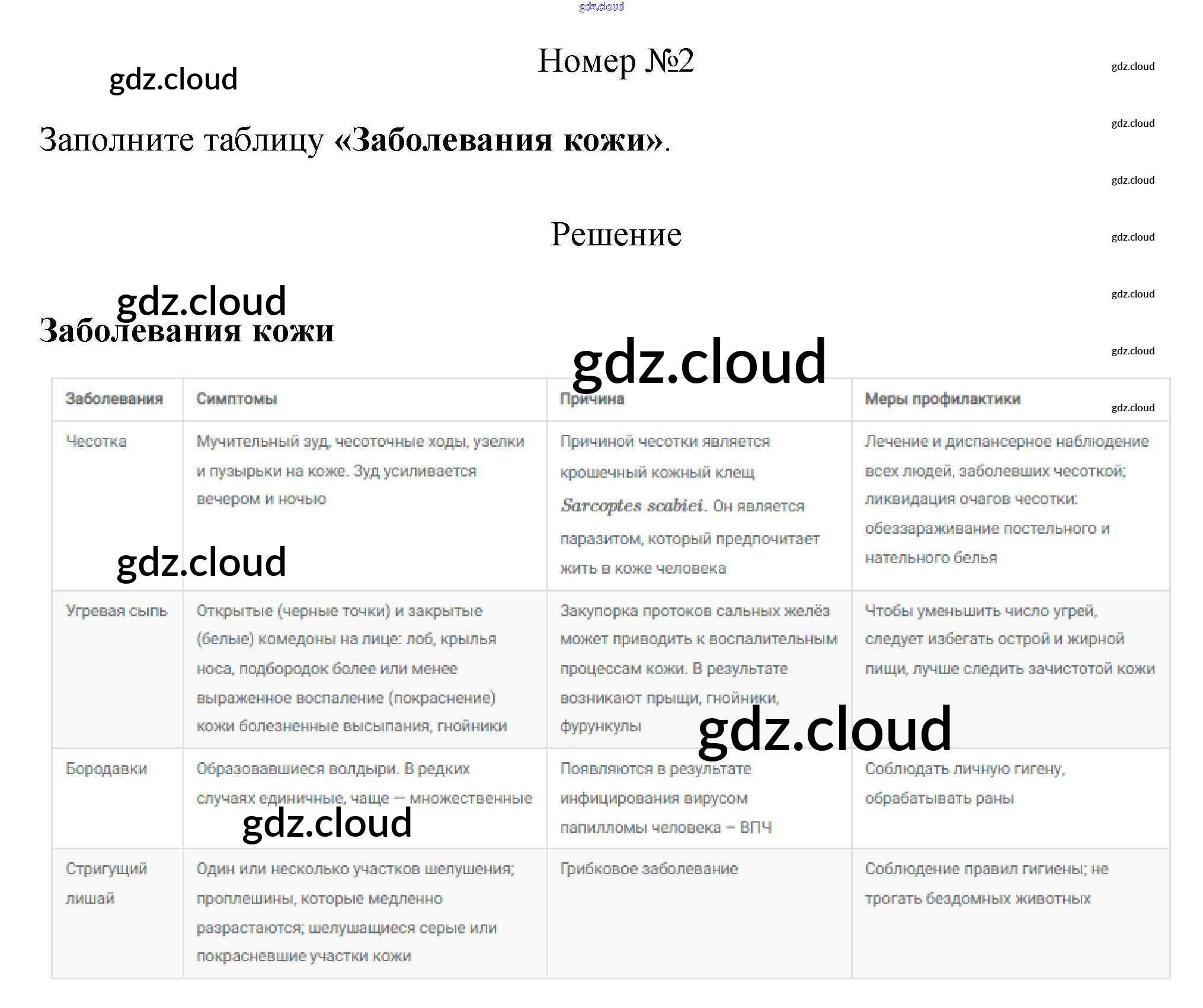 Ответы к §36. Болезни и травмы кожи по Биологии 8 класс Рабочая тетрадь Пасечник Линия жизни Просвещение