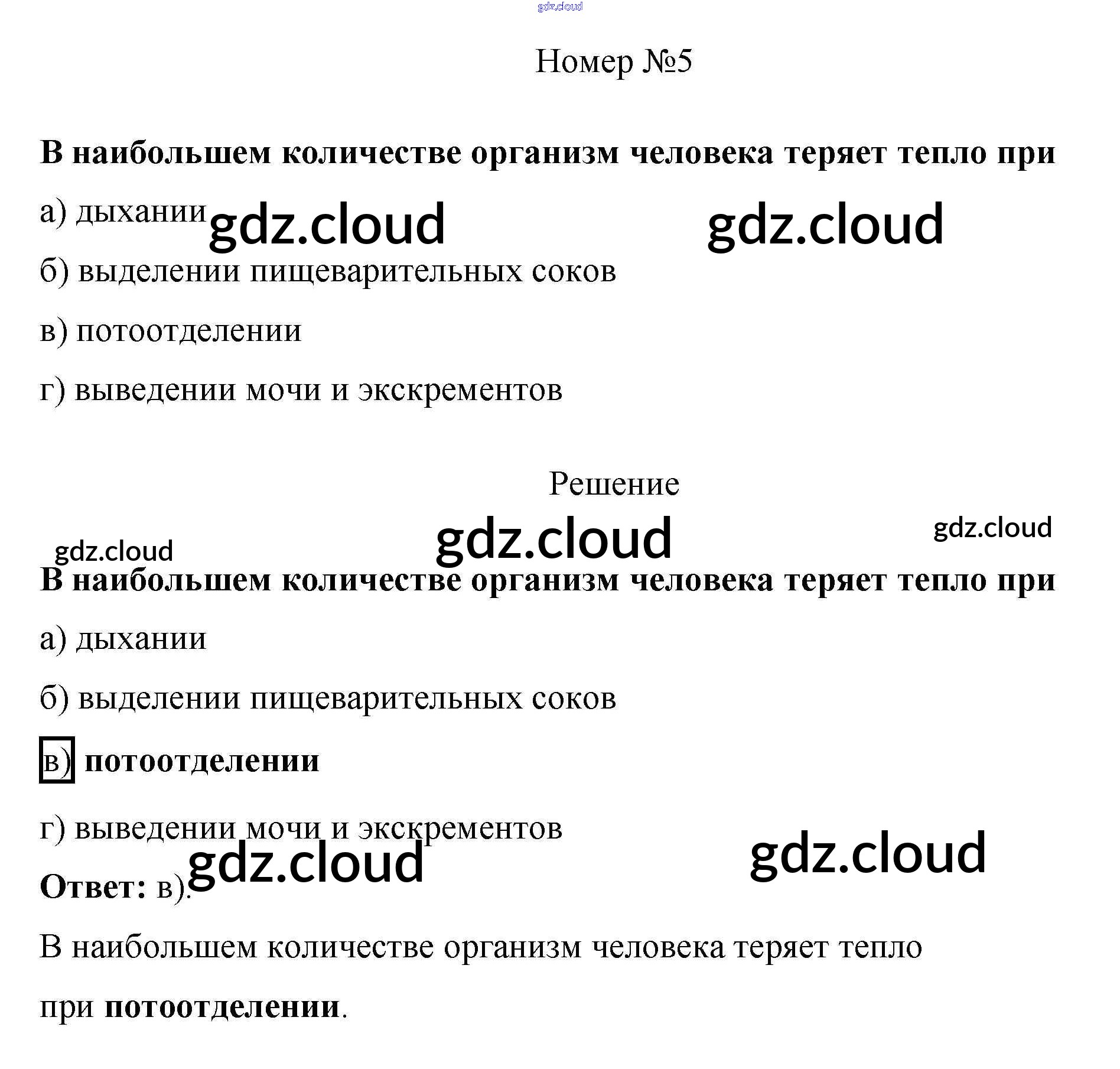 Ответ на задание 5 Рабочая тетрадь Биология за 8 (восьмой) класс Пасечник, Швецов Линия жизни 2019