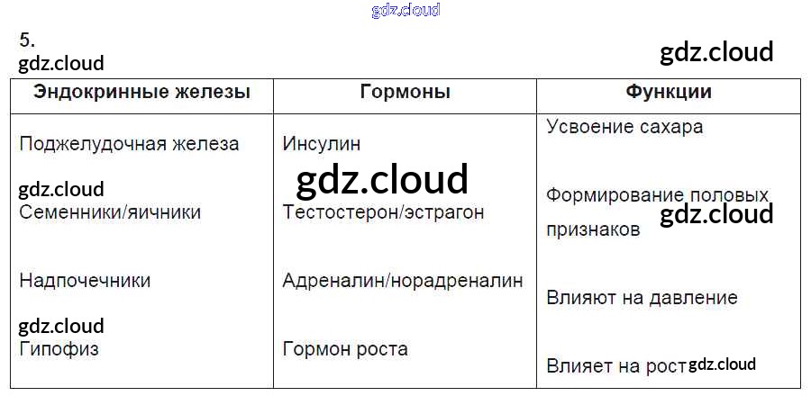 Ответы к §38. Железы внутренней секреции и их функции по Биологии 8 класс Рабочая тетрадь Пасечник Линия жизни Просвещение