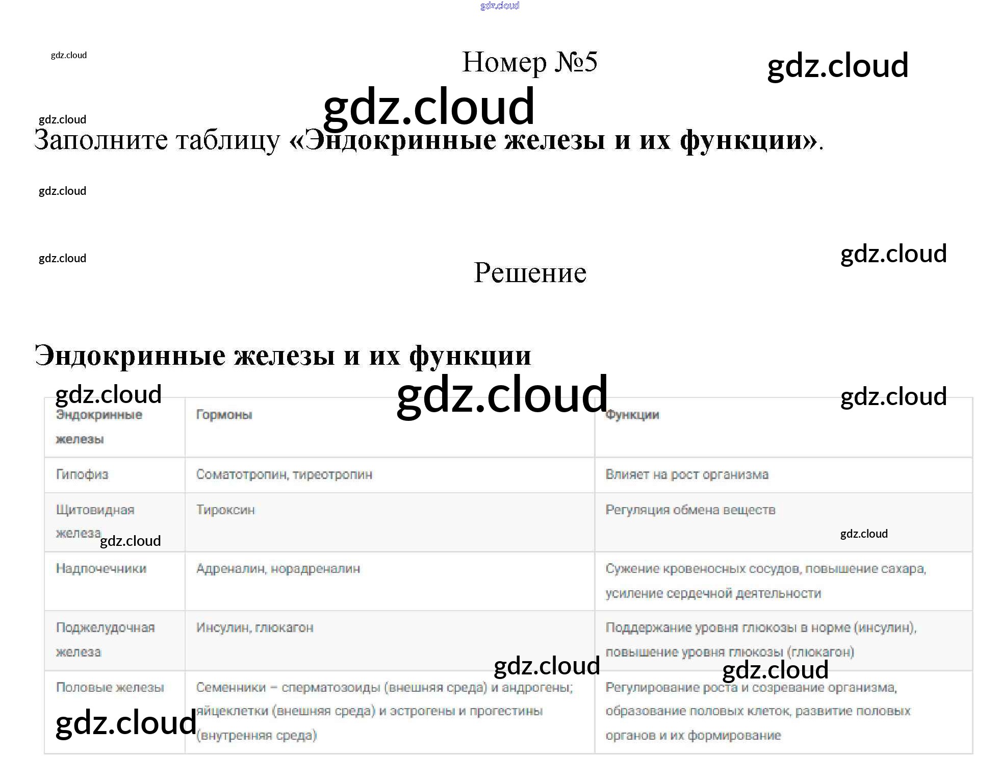 Ответ на задание 5 Рабочая тетрадь Биология за 8 (восьмой) класс Пасечник, Швецов Линия жизни 2019