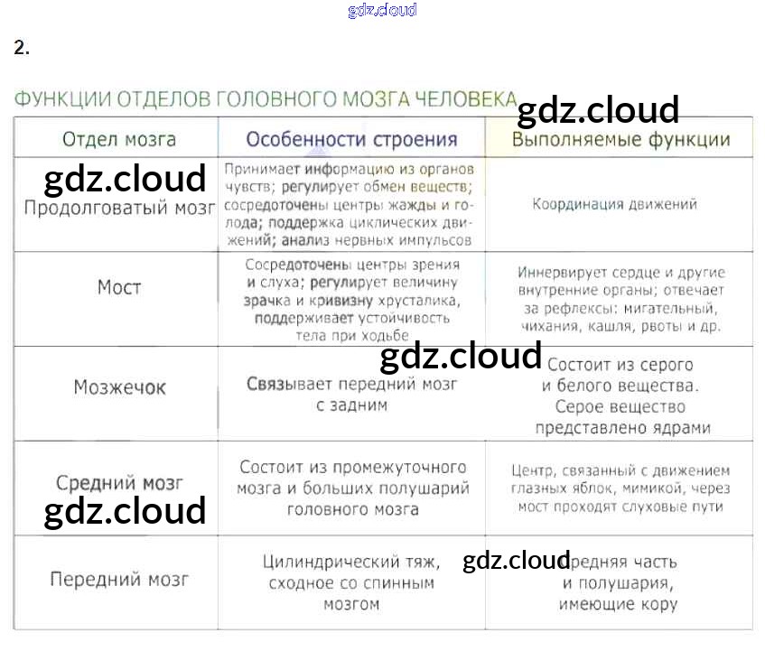 Ответы к §42. Головной мозг по Биологии 8 класс Рабочая тетрадь Пасечник Линия жизни Просвещение