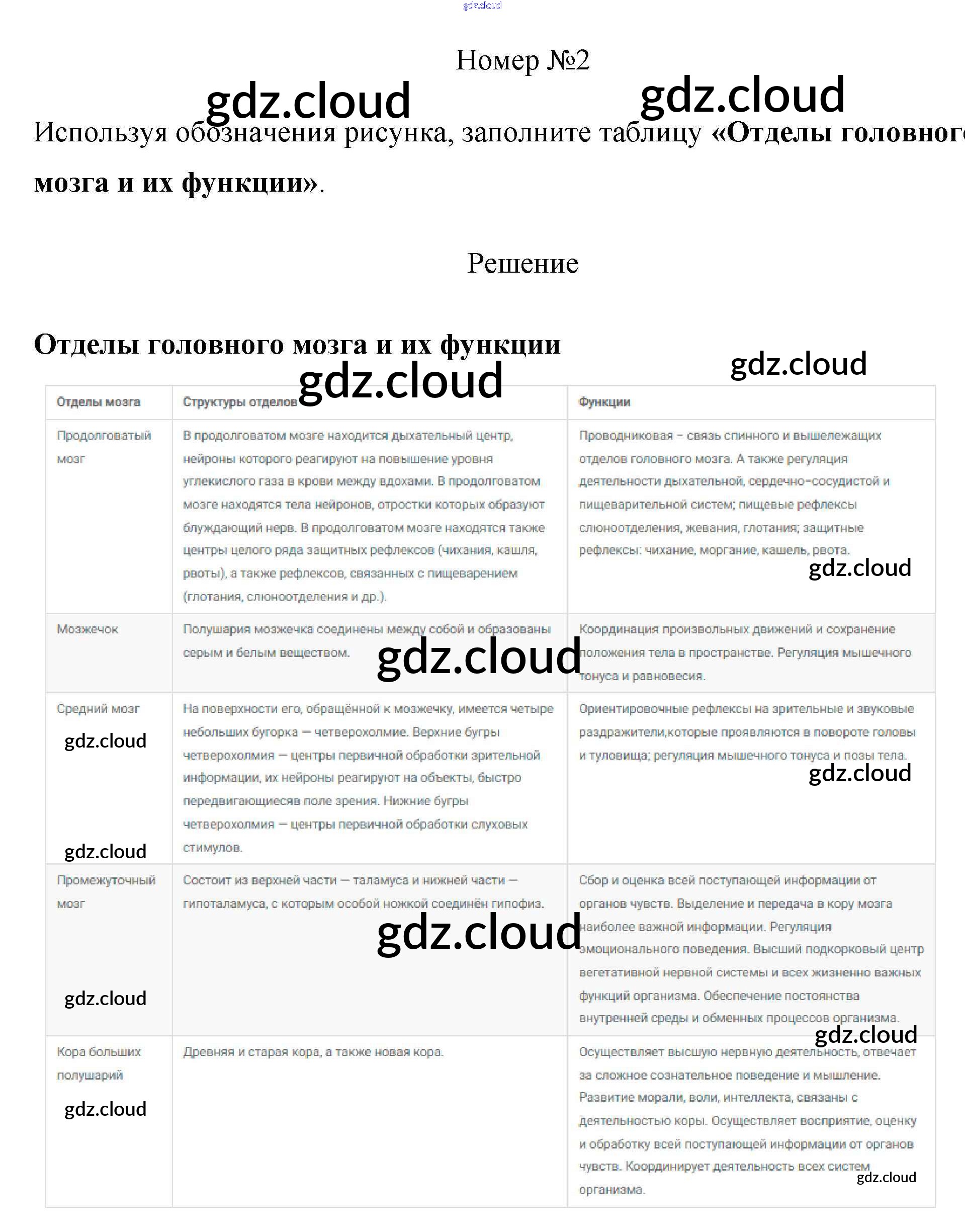Ответ на задание 2 Рабочая тетрадь Биология за 8 (восьмой) класс Пасечник, Швецов Линия жизни 2019