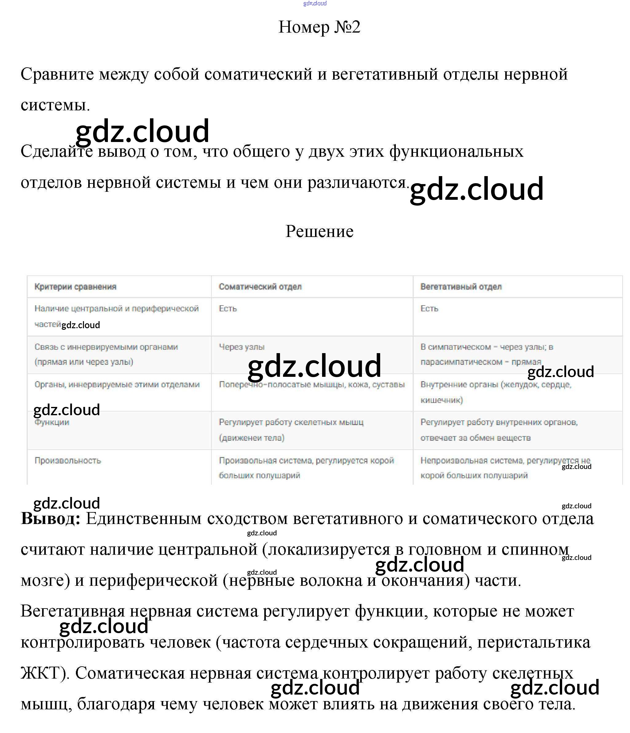 Ответ на задание 2 Рабочая тетрадь Биология за 8 (восьмой) класс Пасечник, Швецов Линия жизни 2019