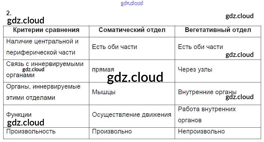 Ответы к §43. Вегетативная нервная система по Биологии 8 класс Рабочая тетрадь Пасечник Линия жизни Просвещение