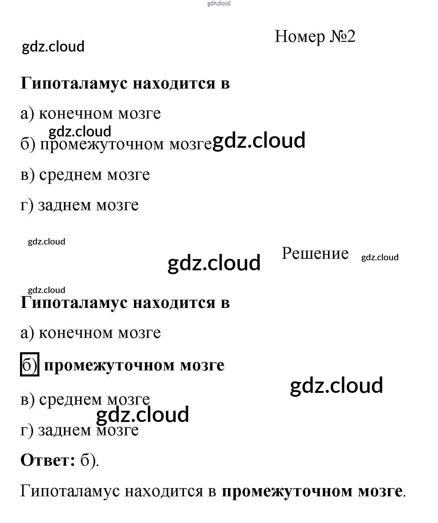 Ответ на задание 2 Рабочая тетрадь Биология за 8 (восьмой) класс Пасечник, Швецов Линия жизни 2019