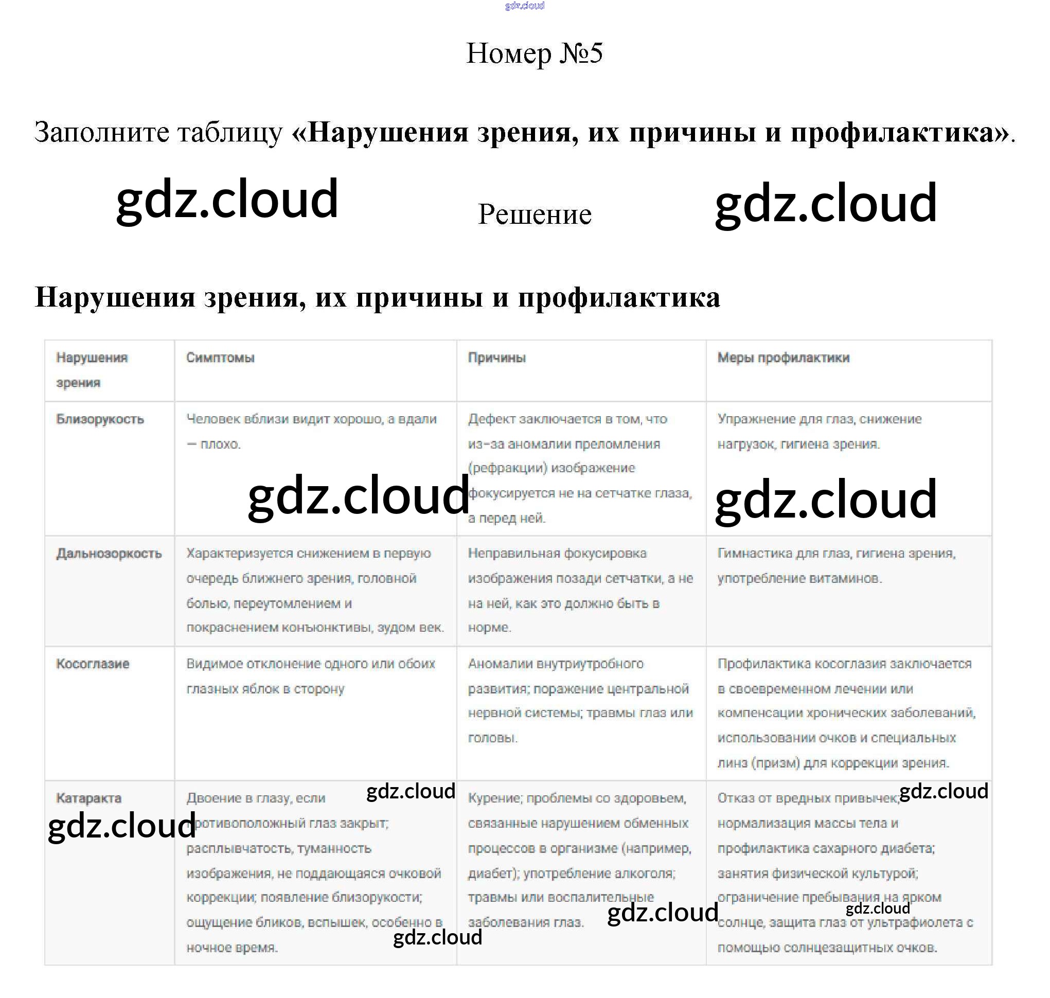 Ответ на задание 5 Рабочая тетрадь Биология за 8 (восьмой) класс Пасечник, Швецов Линия жизни 2019