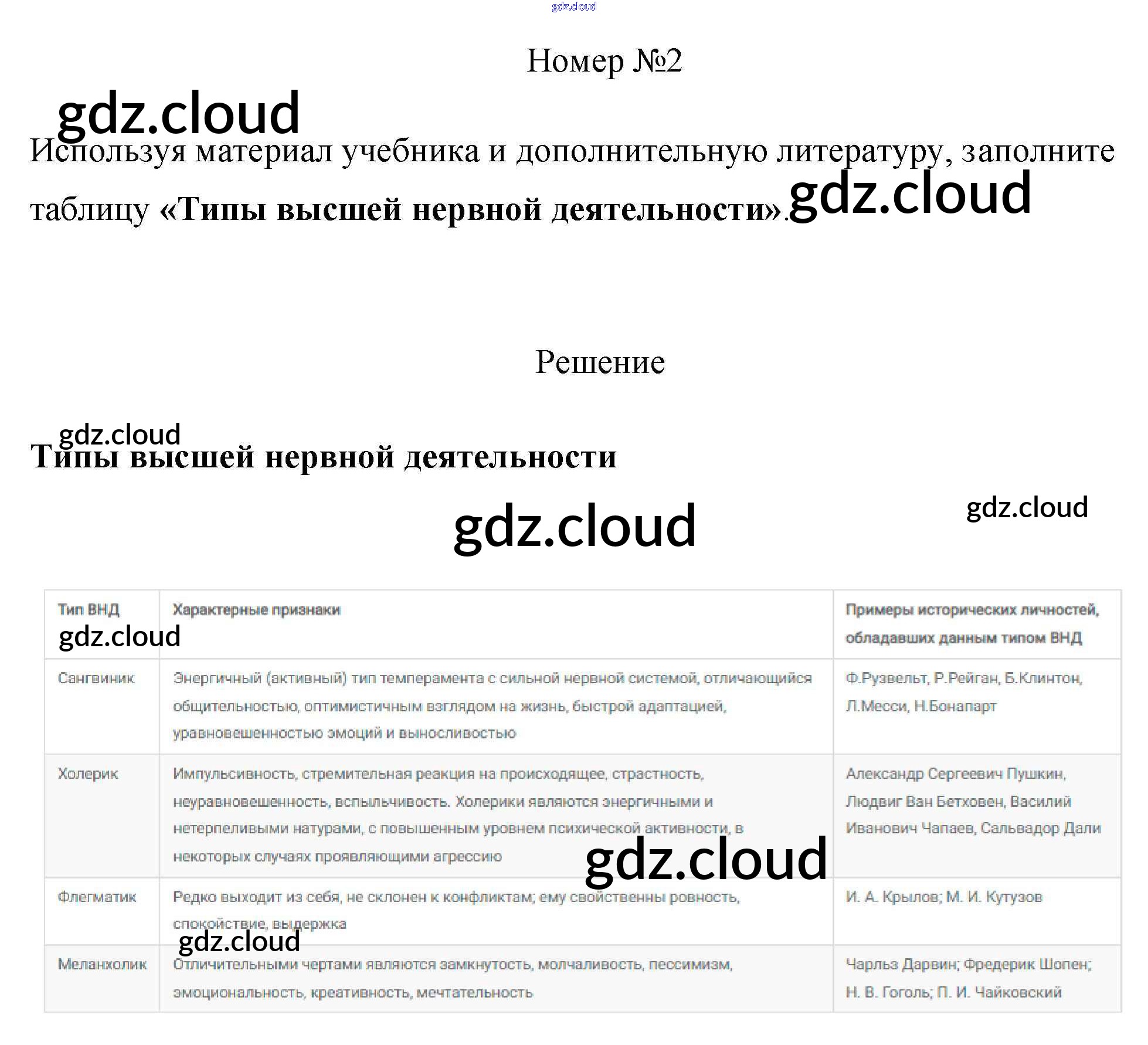 Ответ на задание 2 Рабочая тетрадь Биология за 8 (восьмой) класс Пасечник, Швецов Линия жизни 2019
