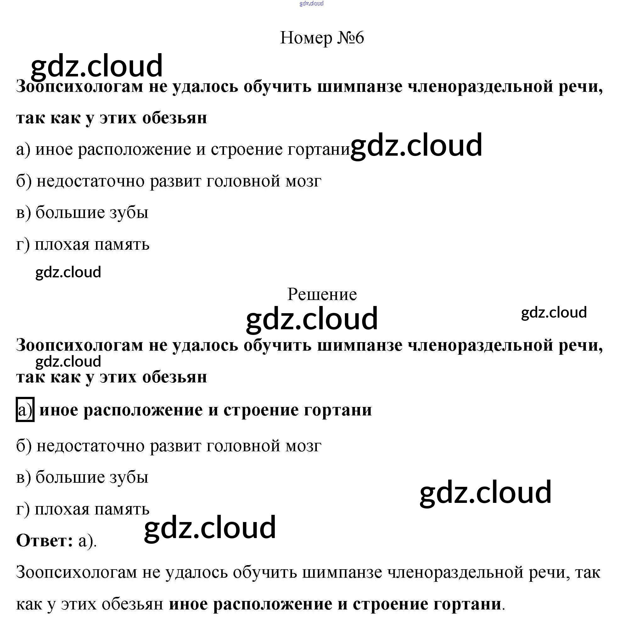 Ответ на задание 6 Рабочая тетрадь Биология за 8 (восьмой) класс Пасечник, Швецов Линия жизни 2019