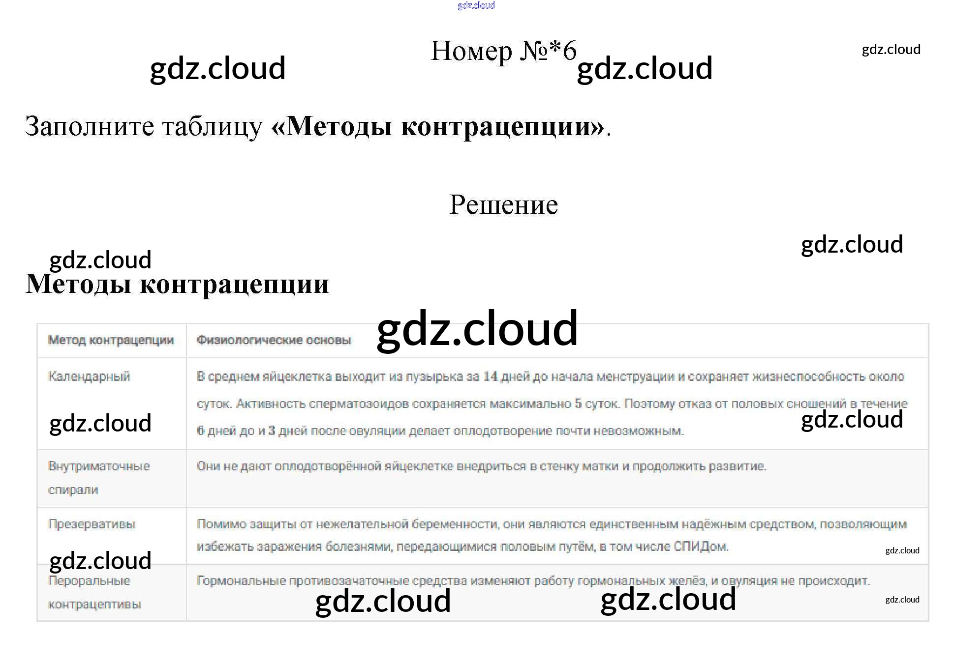 Ответ на задание 6 Рабочая тетрадь Биология за 8 (восьмой) класс Пасечник, Швецов Линия жизни 2019