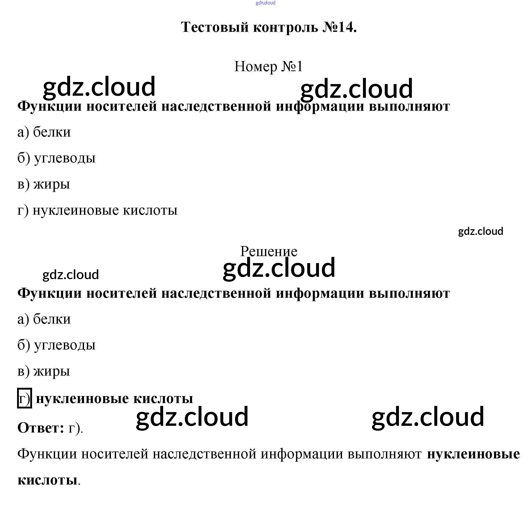 Ответы к тестовому контролю 14 по Биологии 8 класс Рабочая тетрадь Пасечник Линия жизни Просвещение