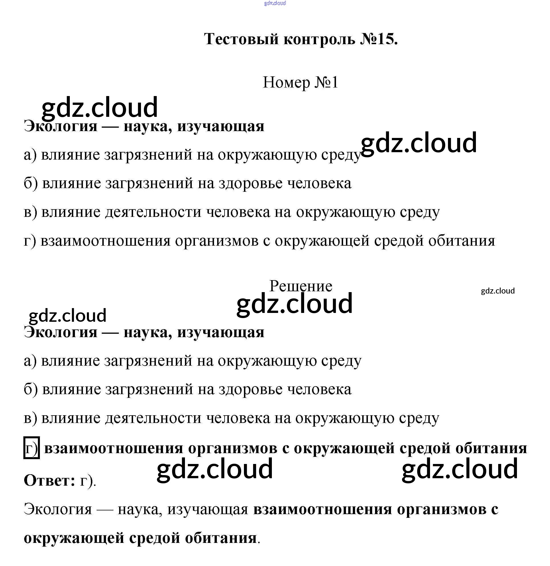 Тестовый контроль 15 / 1