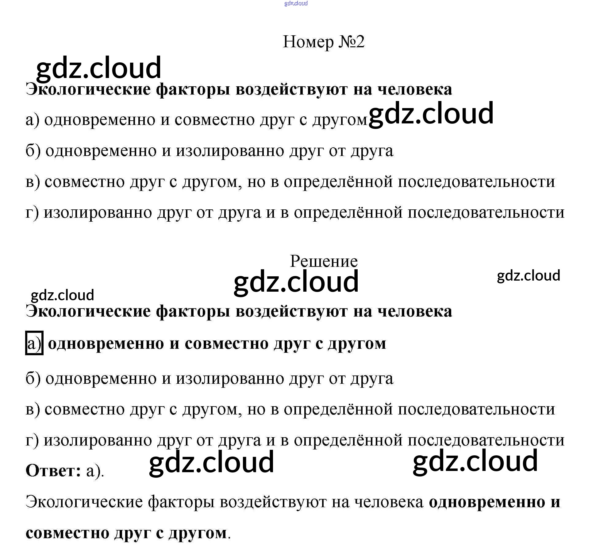 Ответ на задание 2 Рабочая тетрадь Биология за 8 (восьмой) класс Пасечник, Швецов Линия жизни 2019