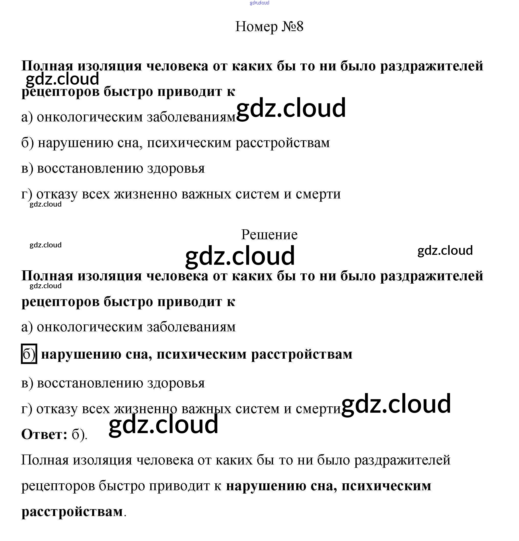 Ответы к тестовому контролю 15 по Биологии 8 класс Рабочая тетрадь Пасечник Линия жизни Просвещение