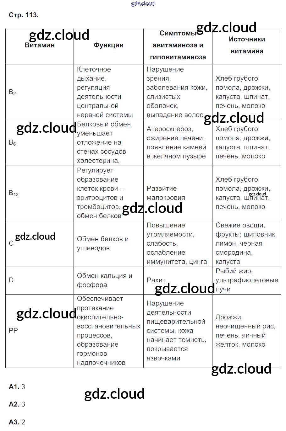 Ответ на задание 113 Рабочая тетрадь Биология за 8 (восьмой) класс Сонин, Агафонова УМК 2017 ФГОС онлайн и без номера телефона.