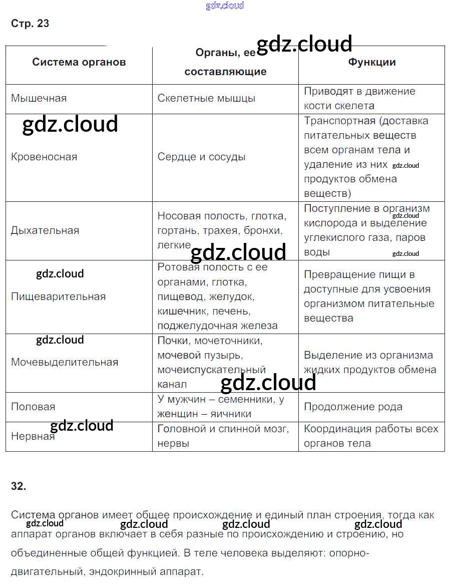 Ответ на задание 23 Рабочая тетрадь Биология за 8 (восьмой) класс Сонин, Агафонова УМК 2017 ФГОС онлайн и без номера телефона.