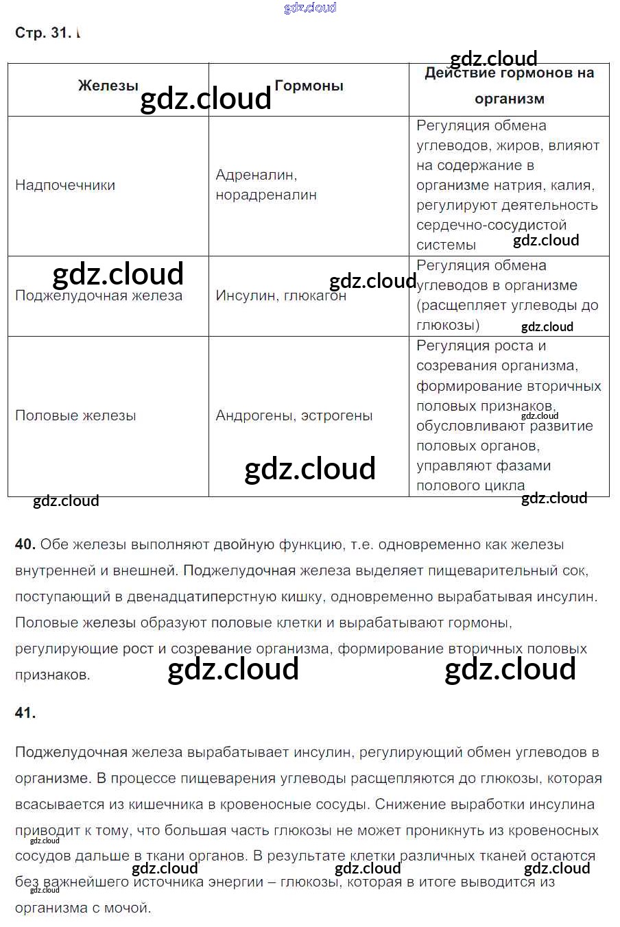 Ответ на задание 31 Рабочая тетрадь Биология за 8 (восьмой) класс Сонин, Агафонова УМК 2017 ФГОС онлайн и без номера телефона.
