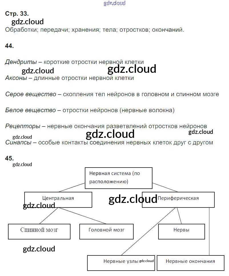 Ответ на задание 33 Рабочая тетрадь Биология за 8 (восьмой) класс Сонин, Агафонова УМК 2017 ФГОС онлайн и без номера телефона.