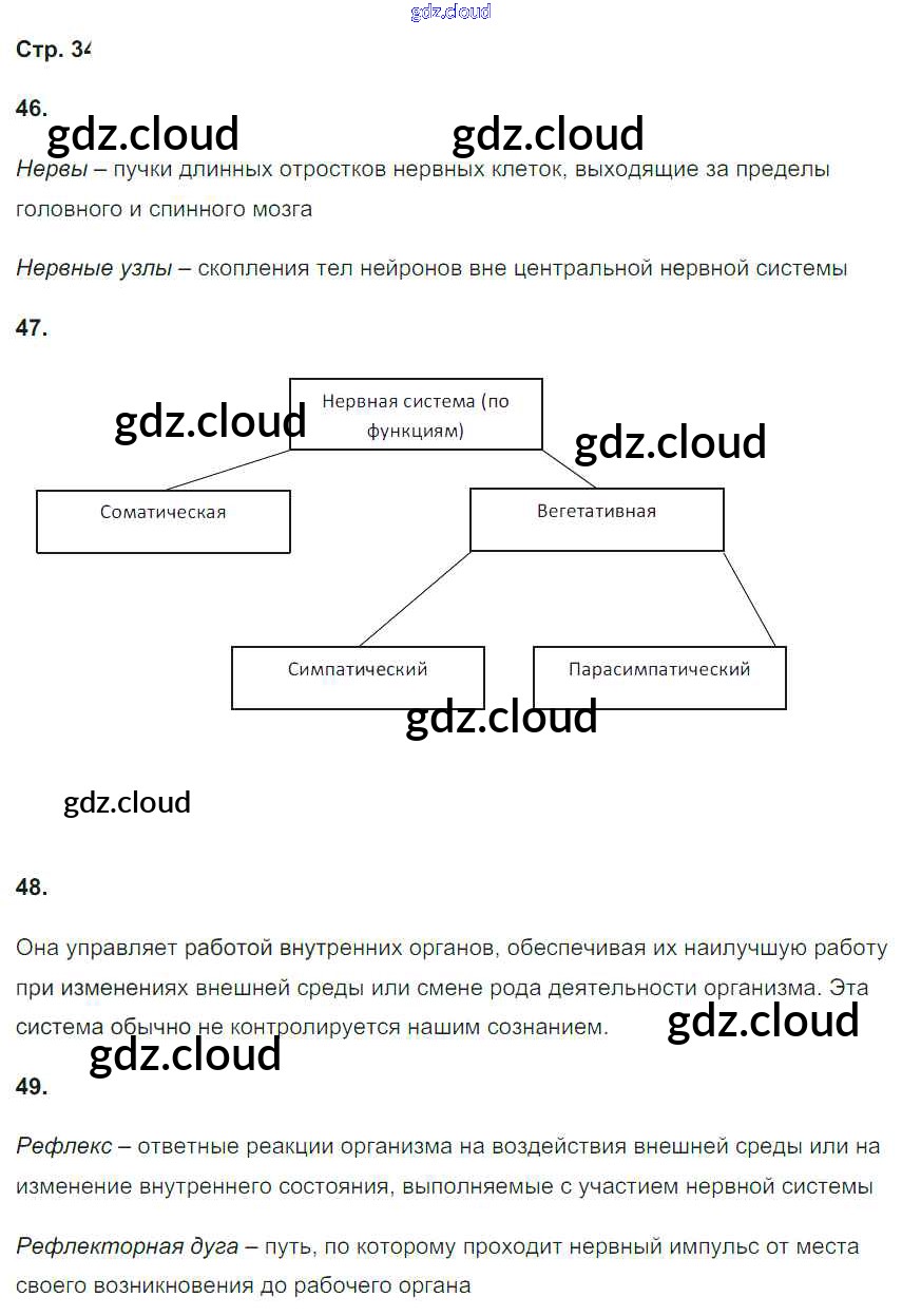 Ответ на задание 34 Рабочая тетрадь Биология за 8 (восьмой) класс Сонин, Агафонова УМК 2017 ФГОС онлайн и без номера телефона.
