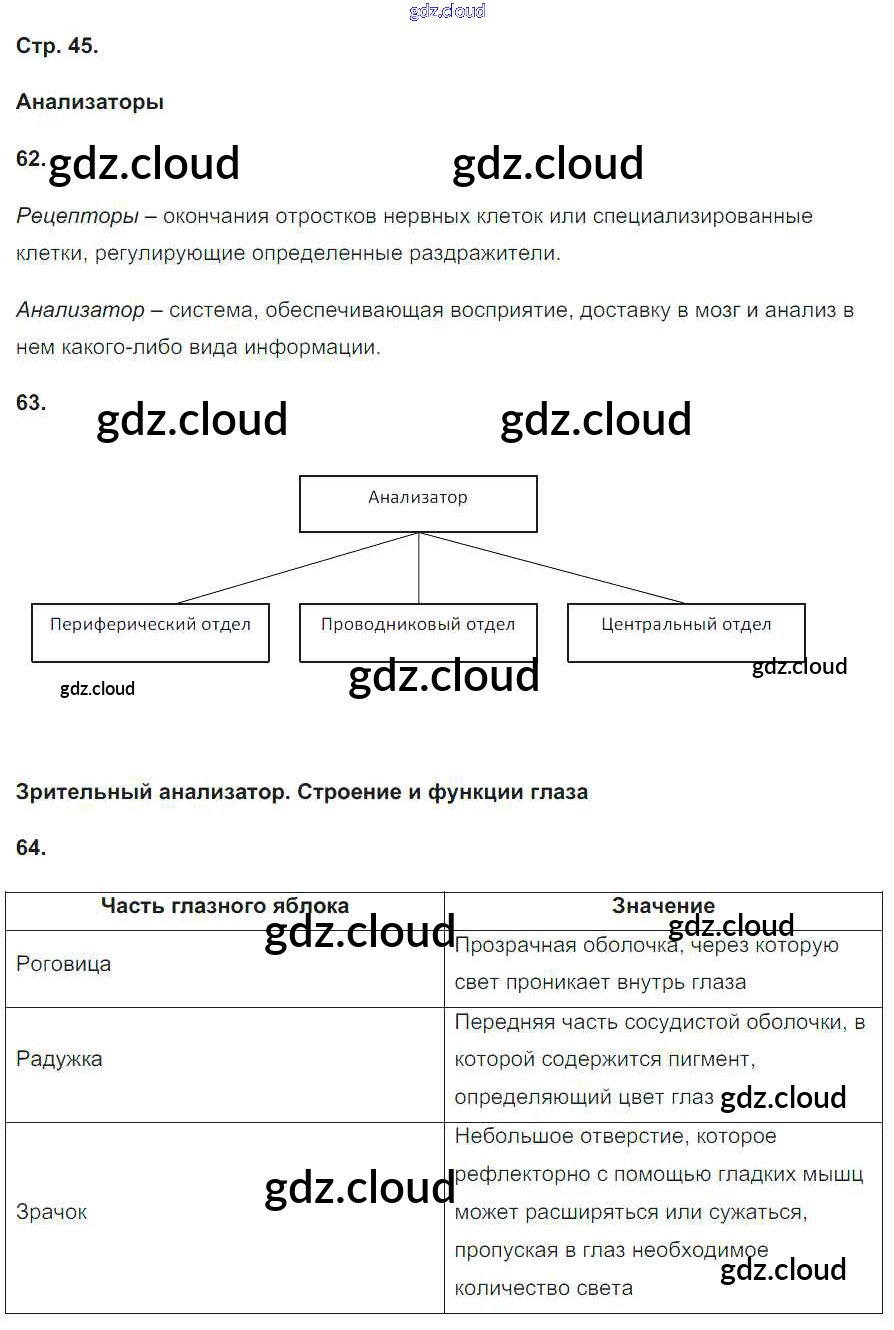 Ответ на задание 45 Рабочая тетрадь Биология за 8 (восьмой) класс Сонин, Агафонова УМК 2017 ФГОС онлайн и без номера телефона.