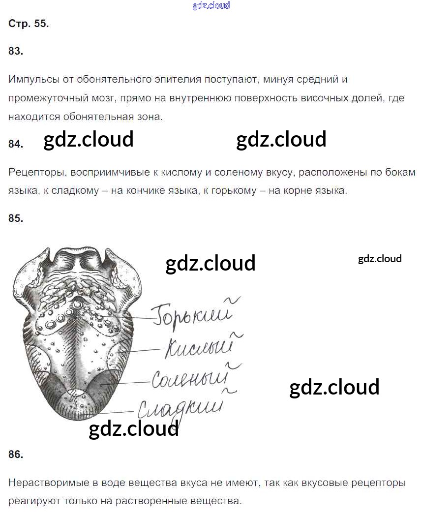 Ответ на задание 55 Рабочая тетрадь Биология за 8 (восьмой) класс Сонин, Агафонова УМК 2017 ФГОС онлайн и без номера телефона.