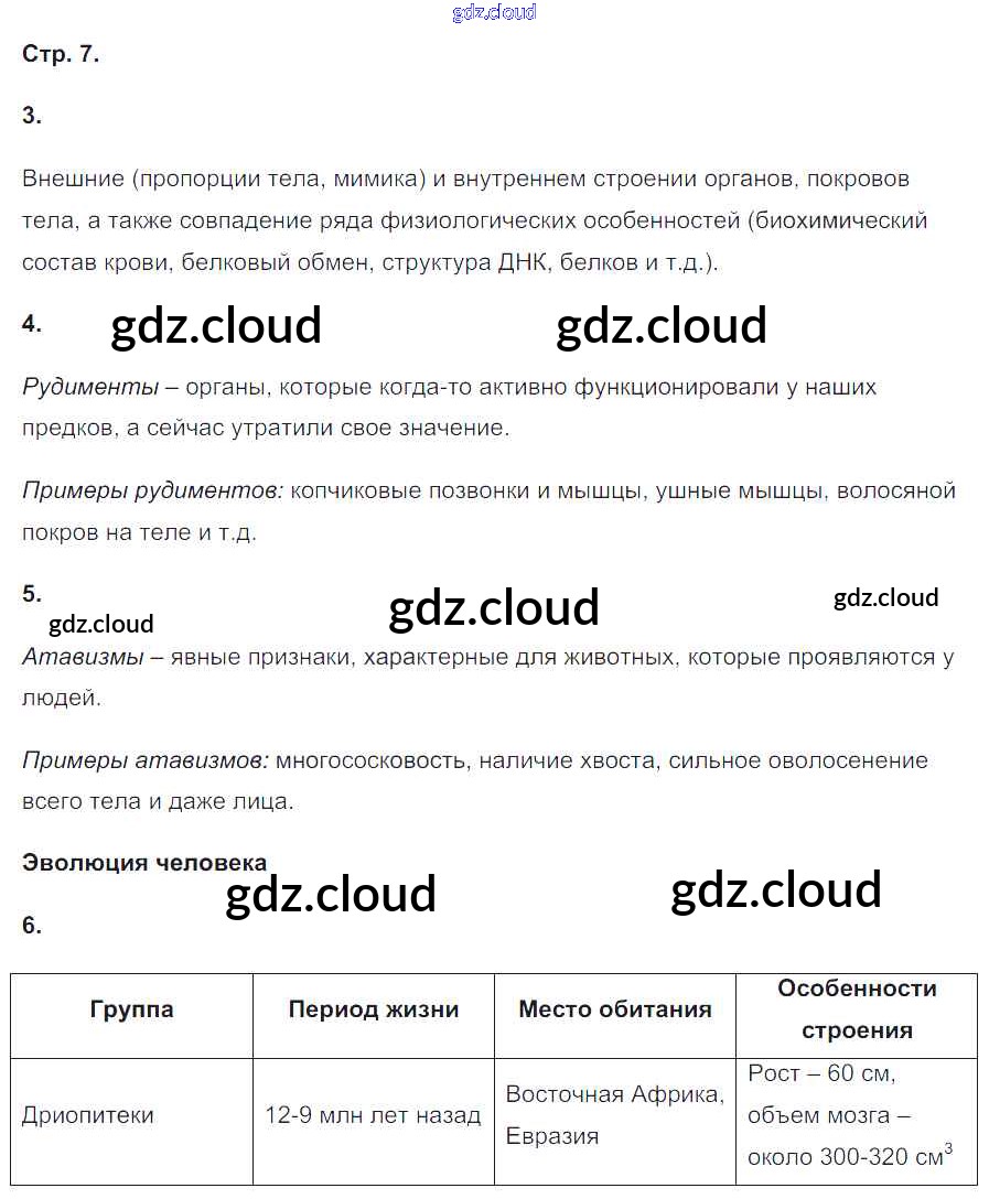 Ответ на задание 7 Рабочая тетрадь Биология за 8 (восьмой) класс Сонин, Агафонова УМК 2017 ФГОС онлайн и без номера телефона.