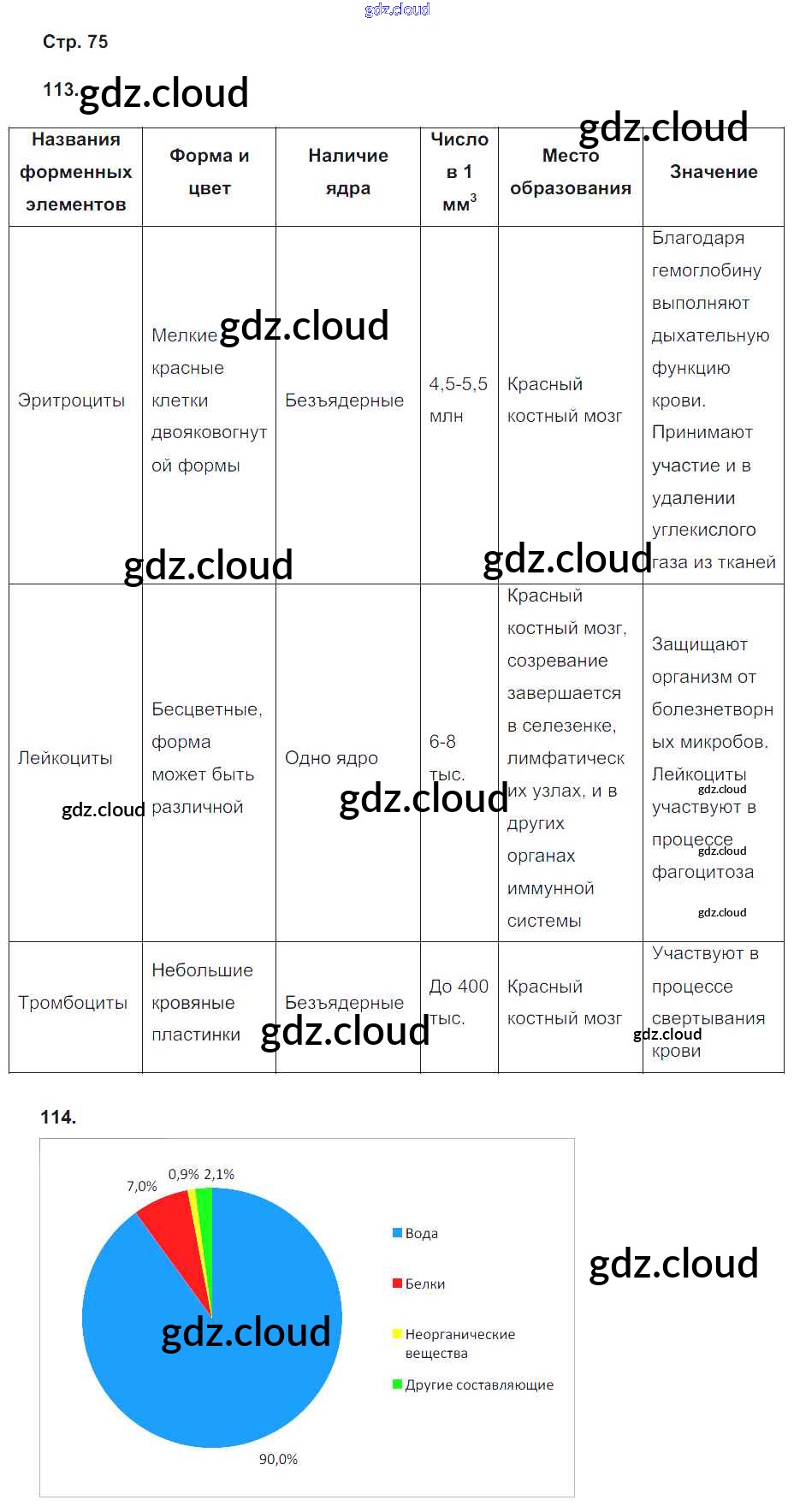 Ответ на задание 75 Рабочая тетрадь Биология за 8 (восьмой) класс Сонин, Агафонова УМК 2017 ФГОС онлайн и без номера телефона.