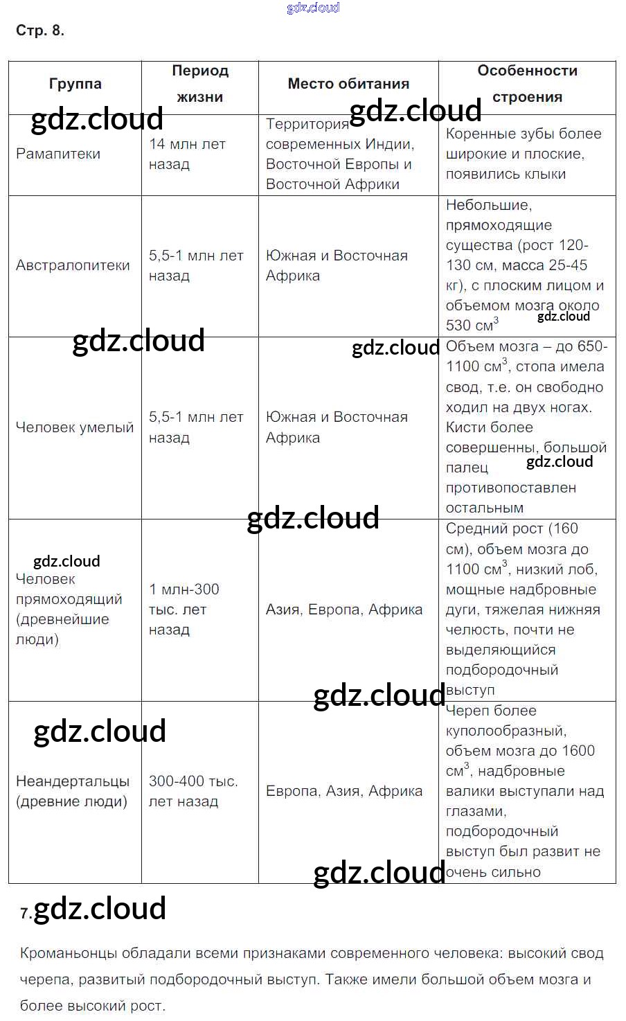 Ответы к Страницам по Биологии 8 класс Рабочая тетрадь Сонин УМК Дрофа