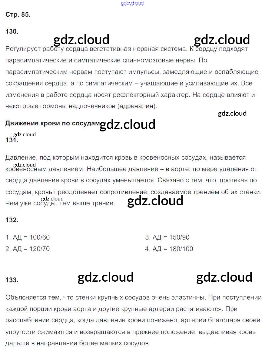 Ответ на задание 85 Рабочая тетрадь Биология за 8 (восьмой) класс Сонин, Агафонова УМК 2017 ФГОС онлайн и без номера телефона.
