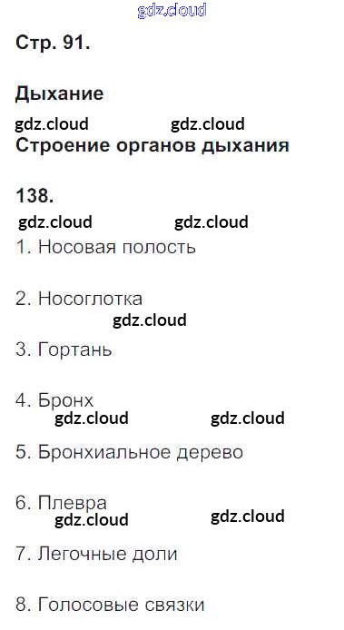 Ответ на задание 91 Рабочая тетрадь Биология за 8 (восьмой) класс Сонин, Агафонова УМК 2017 ФГОС онлайн и без номера телефона.