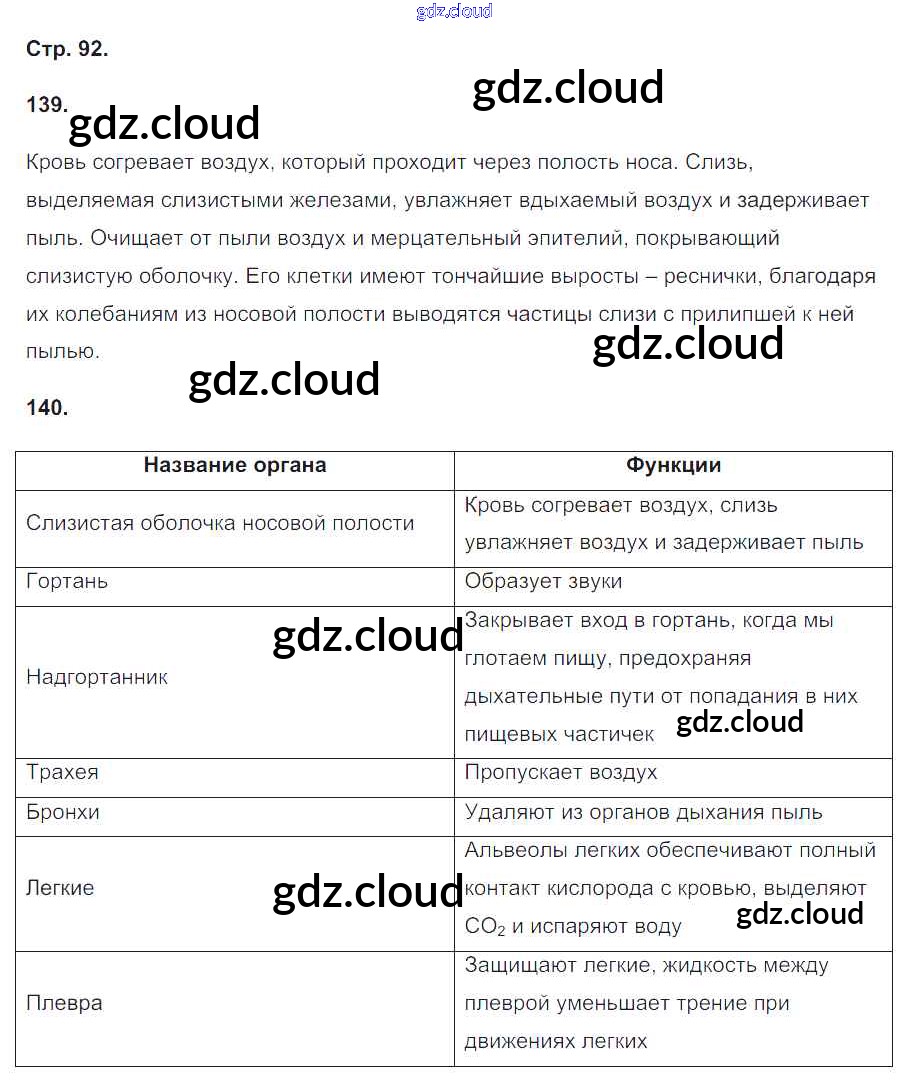 Ответ на задание 92 Рабочая тетрадь Биология за 8 (восьмой) класс Сонин, Агафонова УМК 2017 ФГОС онлайн и без номера телефона.